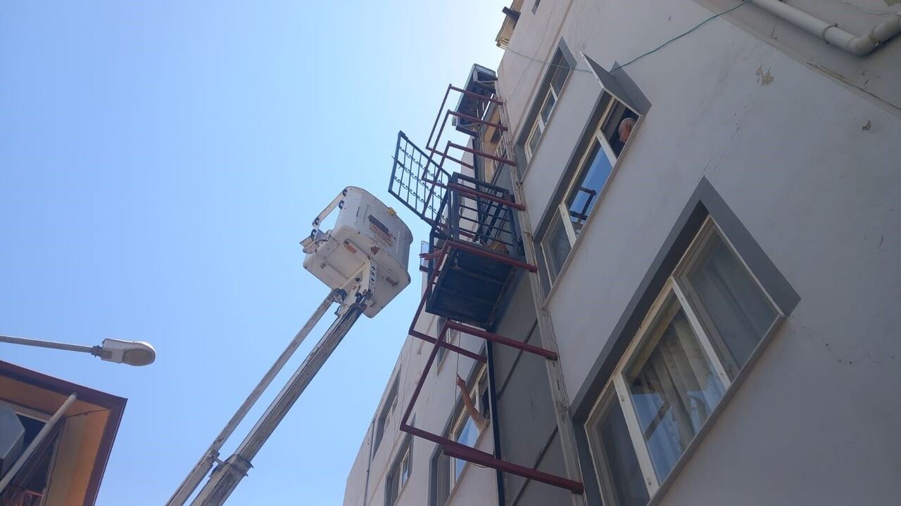 Samandağ’da Dış Cephe Asansöründe Mahsur Kalan Yaşlı Kadın İtfaiye Ekipleri Tarafından Kurtarıldı
