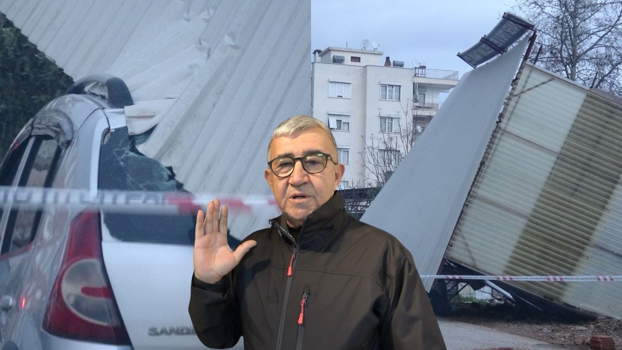 Fırtınanın etkili olduğu Muratpaşa ilçesinde bir iş yerinin konteyner sundurması, park halindeki otomobilin üzerine devrildi. Şans eseri olayda can kaybı yaşanmazken, araçta maddi hasar oluştu.