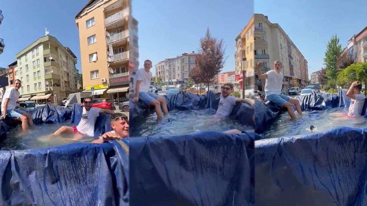 Görüntülerde gençlerin römork içindeki suyun keyfini çıkarırken aynı zamanda traktörle mahalle turu attığı anlar sosyal medyada büyük ilgi gördü.