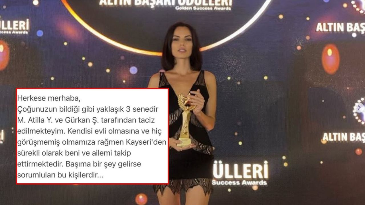 "Çoğunuzun bildiği gibi yaklaşık 3 senedir M. A. Y. ve G. Ş. tarafından taciz edilmekteyim. Kendisi evli olmasına ve hiç görüşmemiş olmamıza rağmen Kayseri'den sürekli olarak beni ve ailemi takip ettirmektedir. Başıma bir şey gelirse sorumluları bu kişilerdir."