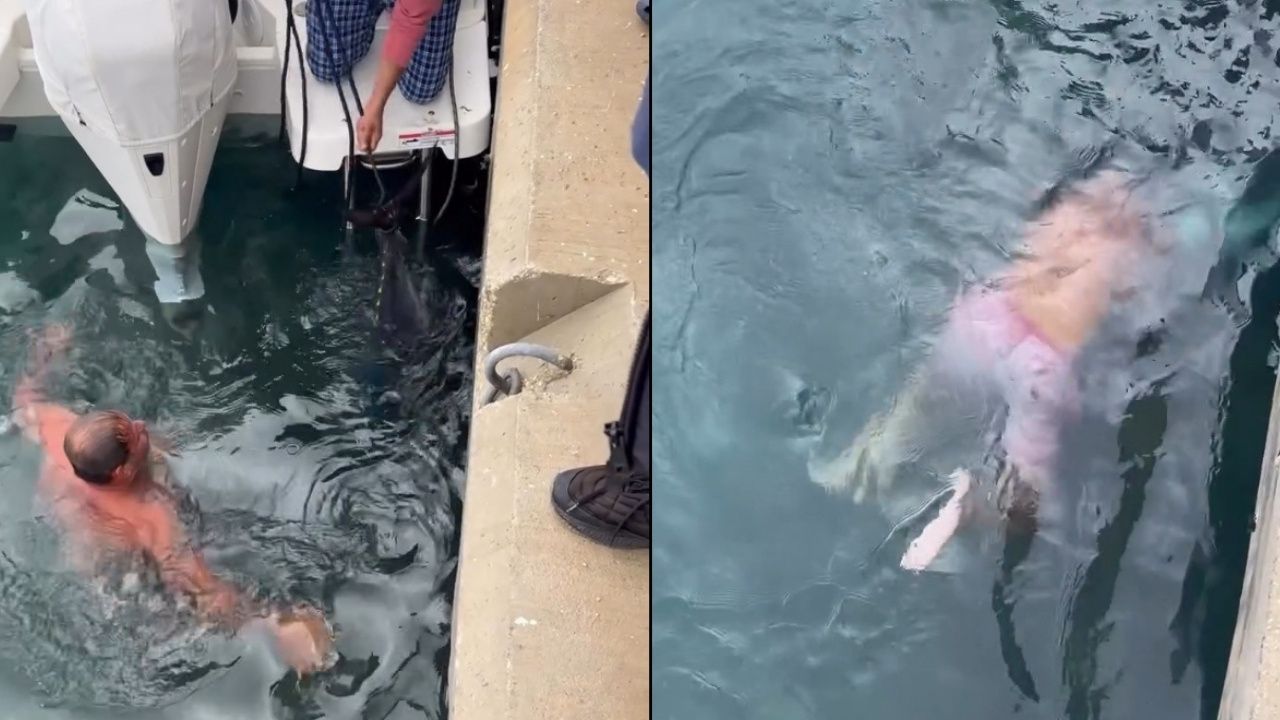 ORKİNOSU GÖRÜNCE ÜSTÜNÜ ÇIKARIP SUYA ATLADI