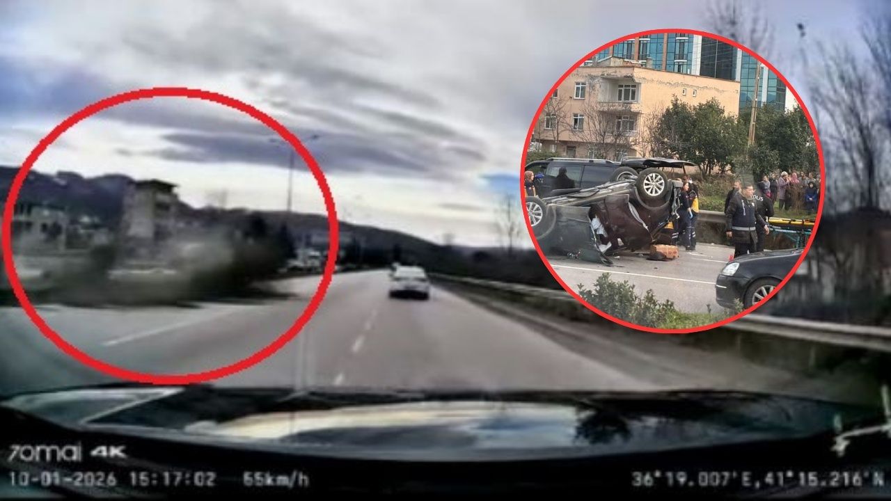 Korku dolu anlar, çevreden geçen bir otomobilin araç kamerasına yansıdı. Görüntülerde aracın refüje çarpıp takla atarak diğer şeride geçmesi ve çarpışma anı net şekilde görüldü.