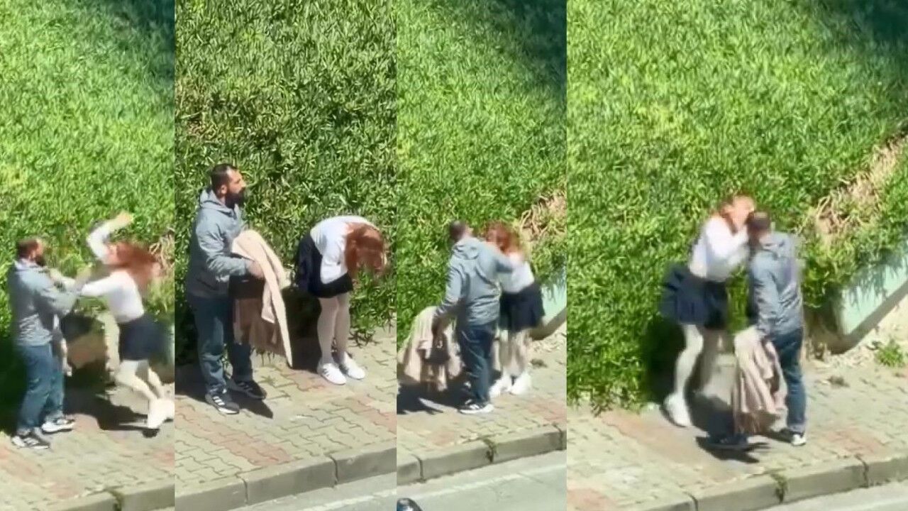 Saldırgan, yaşananları cep telefonu ile kaydeden vatandaşlara da bağırarak tepki gösterdi. Bir süre sonra yeniden kadının yanına dönen kişi, çevredeki kişilerle tartışmasını sürdürdü.