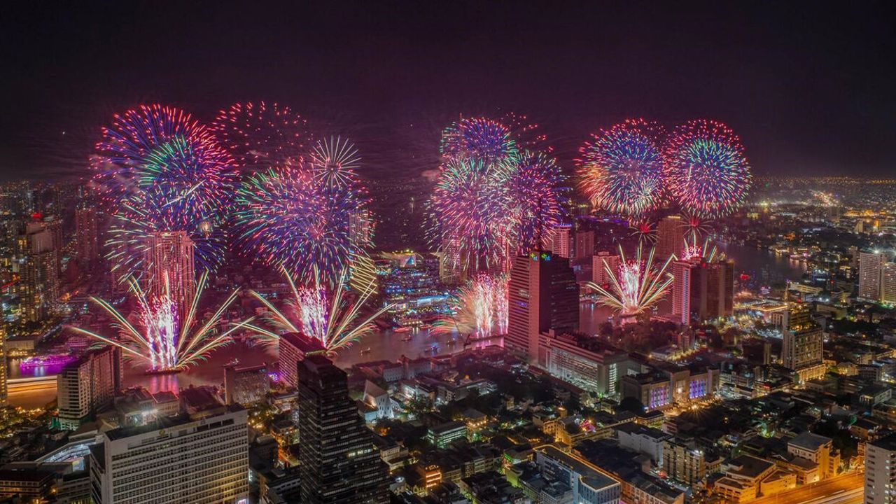 Bangkok’ta özellikle Chao Phraya Nehri üzerindeki ICONSIAM, Asiatique ve Wat Arun (Şafak Tapınağı) ile Sukhumvit Caddesi üzerindeki Central World ve Khaosan Sokağı’ndaki kutlama alanları tamamen doldu. Yerel saatler 00.00’ı gösterdiğinde başkentin gökyüzü, düzenlenen havai fişek ve ışık gösterileriyle renkli görüntülere sahne oldu.