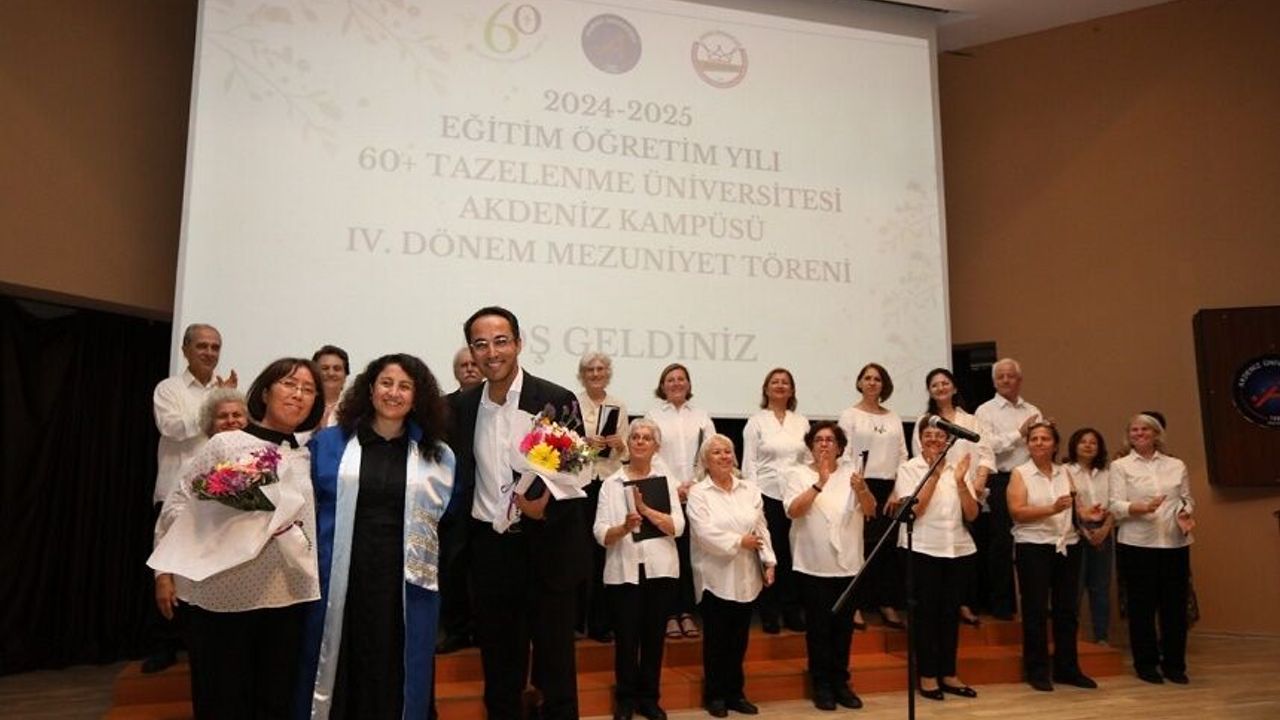 Akdeniz Üniversitesi bünyesinde dört yıl önce kurulan ve Türkiye’nin en dikkat çeken sosyal sorumluluk projelerinden biri olan 60+ Tazelenme Üniversitesi, bu yıl 107 lisans ve ilk kez 101 yüksek lisans mezunu verdi. Törene damga vuran an ise, öğrencilerin “Hocam, bizi sınıfta bırakın” talebiydi. Rektör Prof. Dr. Özlenen Özkan ise bu isteğe kayıtsız kalmayarak doktora programı için söz verdi.