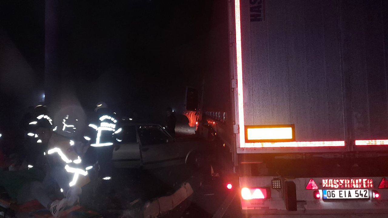 Çarpışmanın sonucunda hurdaya dönen otomobilde bulunan sürücü Z.D.Ş. ve yolcu konumunda bulunan A.Ş. araç içerisinde sıkışırken tır sürücüsü E.E. yaralandı. İhbar üzerine adrese itfaiye, sağlık ve polis ekipleri sevk edildi.