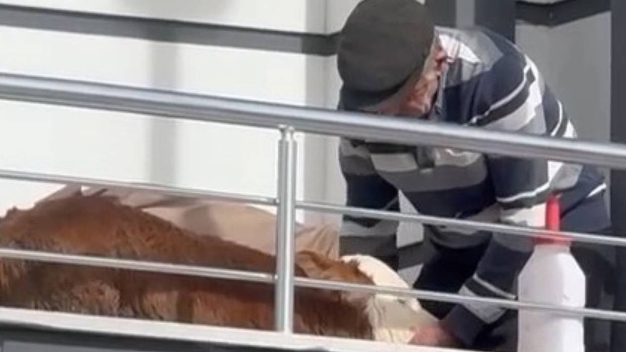 Sulusaray ilçesinde yaşayan Osman Kavlak, rahatsızlanan buzağısını veterinere götürerek serum taktırdı. Tedavinin ardından buzağıyı kendine gelmesi için evine çıkaran Kavlak, bir süre balkonda güneş almasını sağlayarak bakımını sürdürdü.