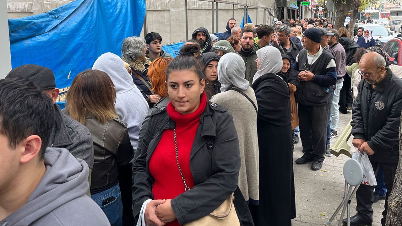 Sabah saat 09.00'da kuyruğa giren ve 14.30 sıralarında hala sıra bekleyen 58 yaşındaki Ergün Coşkun, "Ev için bekliyoruz işte. Kuyruğa girdik, çıkarsa şansımıza. Deneyeceğiz bakalım. Bayağı bir kuyruk var, 1 kilometreye yakın gibi. İnşallah çıkar, umutluyuz. Umut biterse hayat bitermiş. Bütün insanları buraya yönlendirmişler, gördüğünüz üzere büyük bir sıkıntı oluyor. İçerideki işlemler yavaş mı ilerliyor, bilmiyorum. İçeriyi göremiyorum ki. Halkı bölseler daha iyiydi değil mi?" dedi.
