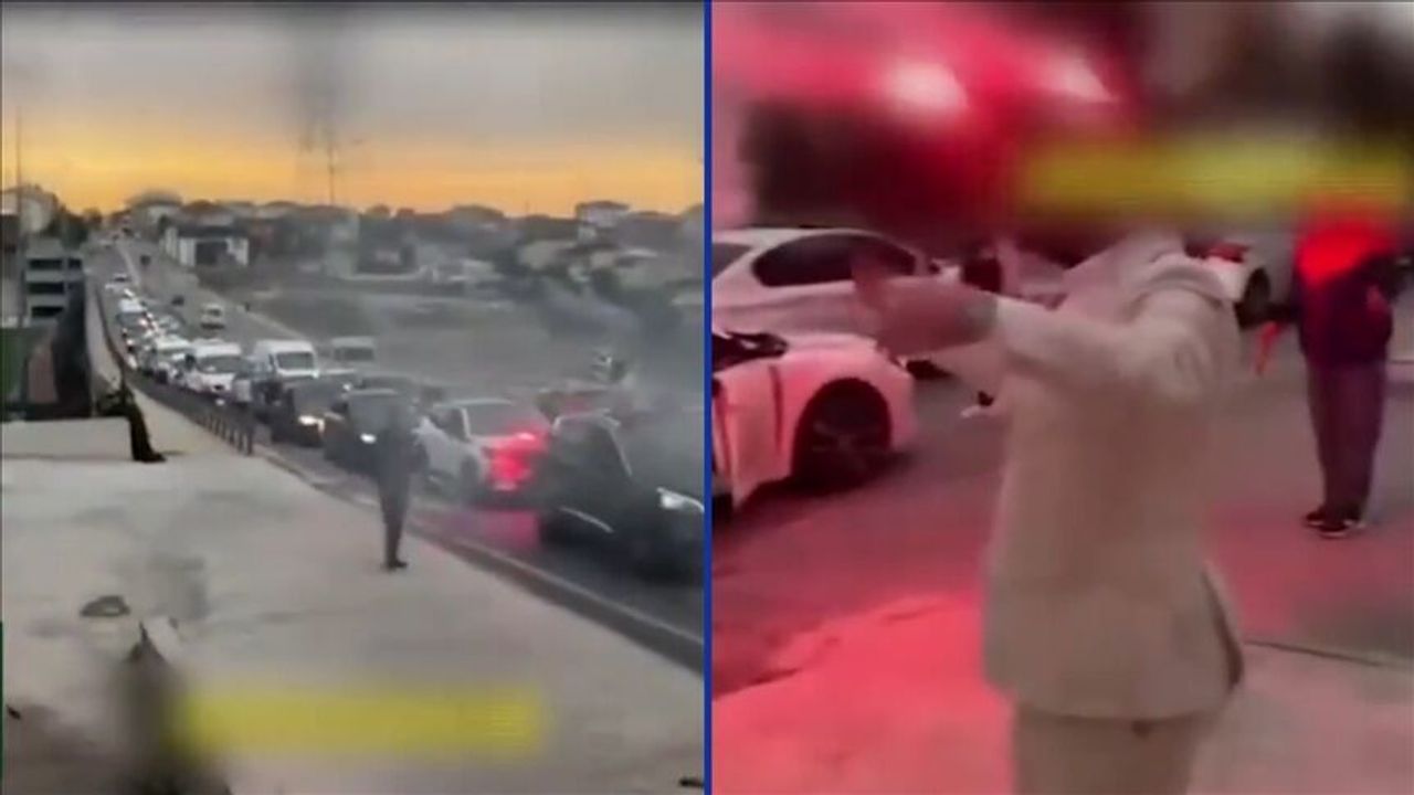 Bir çiftin en mutlu günü ama trafik kuralları hiçe sayılmış. Uzun araç kuyrukları, yakılan meşaleler, gürültü…