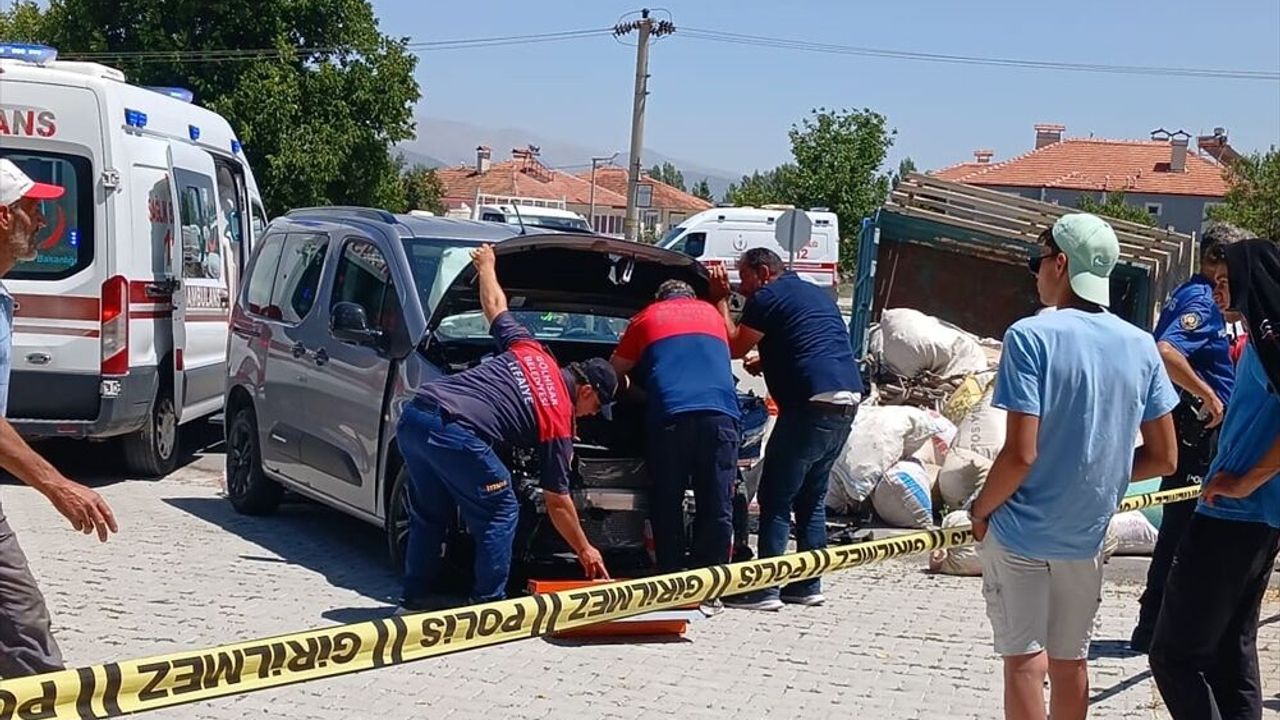 Celal E. (58) idaresindeki 15 HE 720 plakalı traktör, Merkez Cami Mahallesi Mehmet Akif Ersoy Bulvarı'nda Fatih M.K. (32) yönetimindeki 34 NJU 624 plakalı hafif ticari araçla çarpıştı.