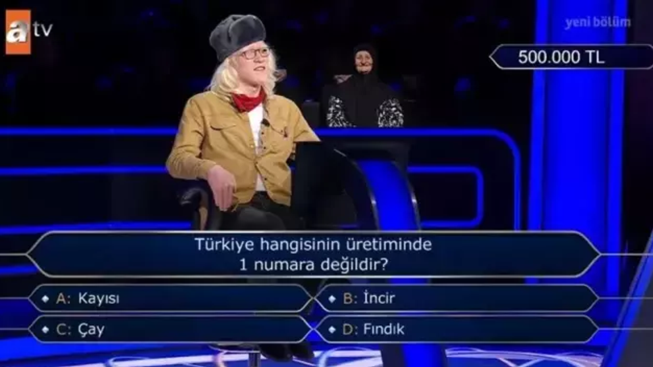 Türkiye'nin bu dört ürünün üretiminde üst sıralarda yer aldığı biliniyor. Ancak sadece üçü için dünya liderliği söz konusu. Yarışmacı, tüm joker haklarını kullandıktan sonra risk almak yerine yarışmadan çekilmeyi tercih etti. Bu kararıyla 300 bin TL’lik ödülün sahibi oldu.