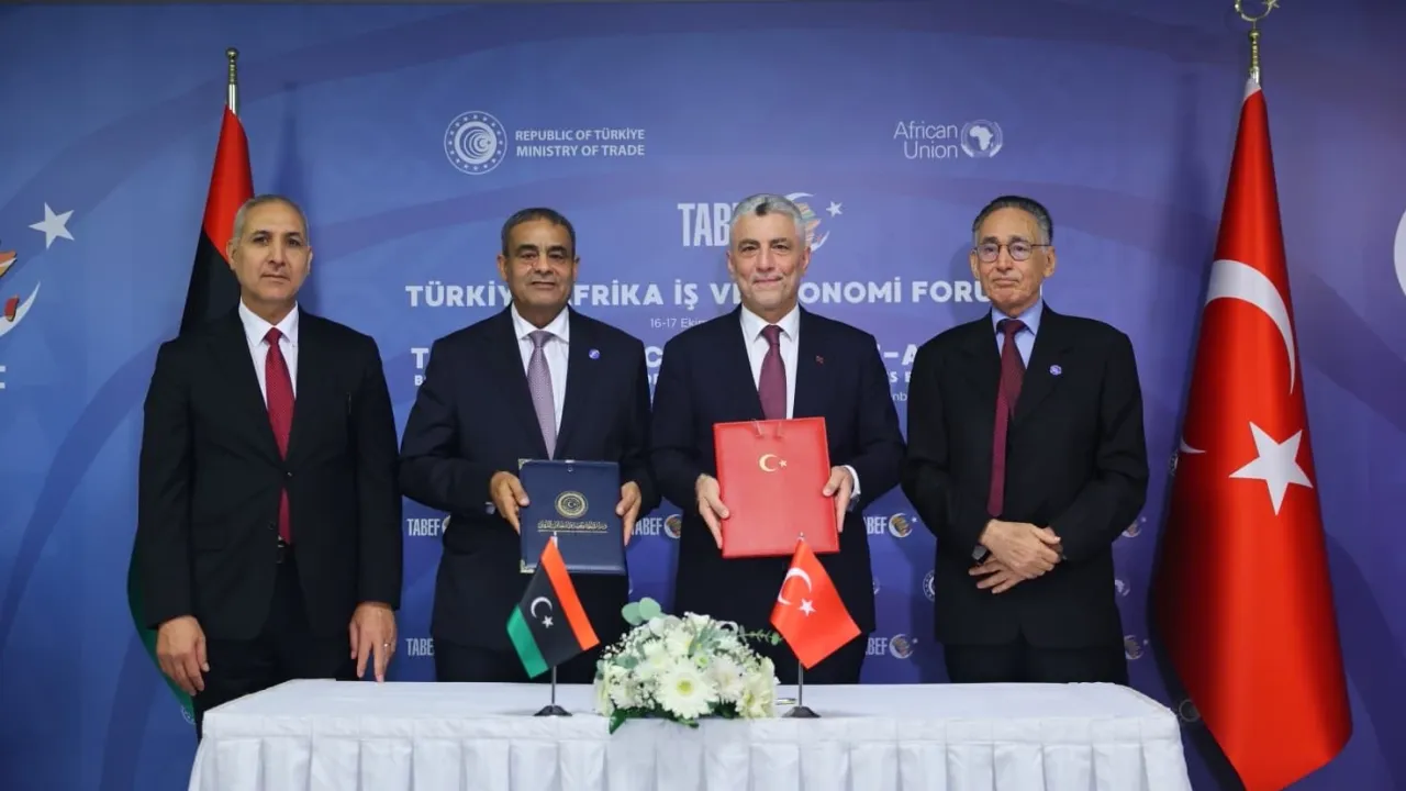 Türkiye-Afrika 5. Ekonomi ve İş Forumu kapsamında İstanbul’da gerçekleştirilen temaslarda, Ticaret Bakanı Prof. Dr. Ömer Bolat, Libya Milli Birlik Hükümeti Ulaştırma Bakanı Mohamed Salem El-Şahubi ve Ekonomi ve Ticaret Bakanı Muhammed Ali Muhammed El-Huveyc ile bir araya geldi. Görüşmeler sonucunda, iki ülke arasındaki ekonomik ilişkileri güçlendirecek iki kritik anlaşmaya imza atıldı.