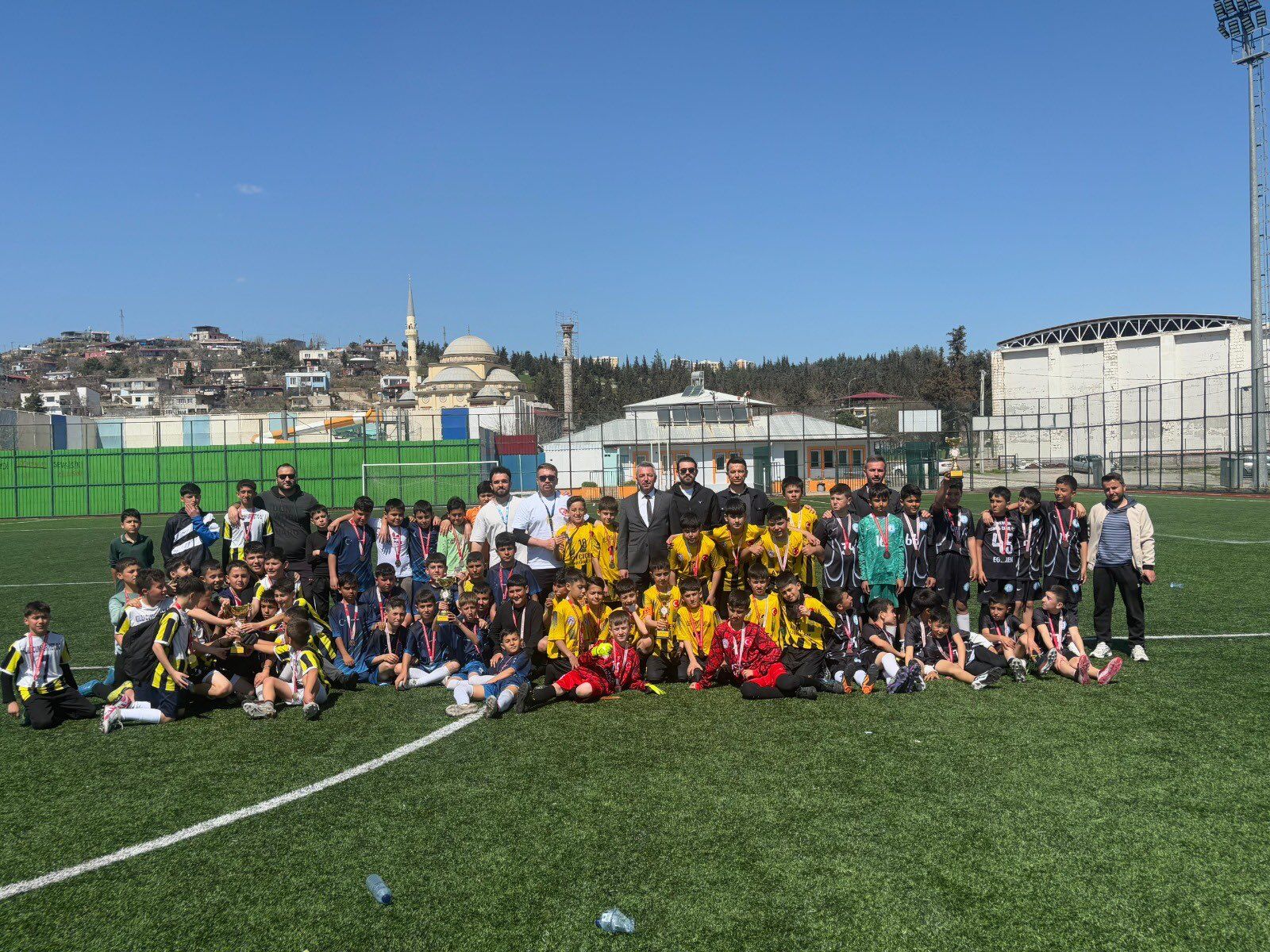 Kahramanmaraş’ın spor altyapısını güçlendirmek ve okullar arası rekabeti centilmenlik ruhuyla birleştirmek amacıyla düzenlenen Okul Sporları müsabakaları, Türkoğlu ilçesinde muhteşem bir finalle noktalandı. 2025–2026 Eğitim Öğretim Yılı takvimi kapsamında gerçekleştirilen Küçük Erkek Futbol İlçe Birinciliği, Türkoğlu Sentetik Futbol Sahası’nın ev sahipliğinde yapıldı. Hafta boyunca süren ve genç yeteneklerin kendilerini gösterme fırsatı bulduğu turnuva, bölgedeki spor otoriteleri ve veliler tarafından yakından takip edildi. Kahramanmaraş Gençlik ve Spor İl Müdürlüğü’nün organizasyonuyla hayata geçen bu anlamlı spor etkinliği, sadece bir yarışma değil, aynı zamanda öğrencilerin sosyal gelişimine katkı sunan dev bir platforma dönüştü. Müsabakaların sonunda düzenlenen ödül töreninde yaşanan sevinç çığlıkları, Türkoğlu semalarında yankılandı. İşte turnuvanın detayları ve geleceğin futbol yıldızlarının ödül töreninden yansıyan kareler…