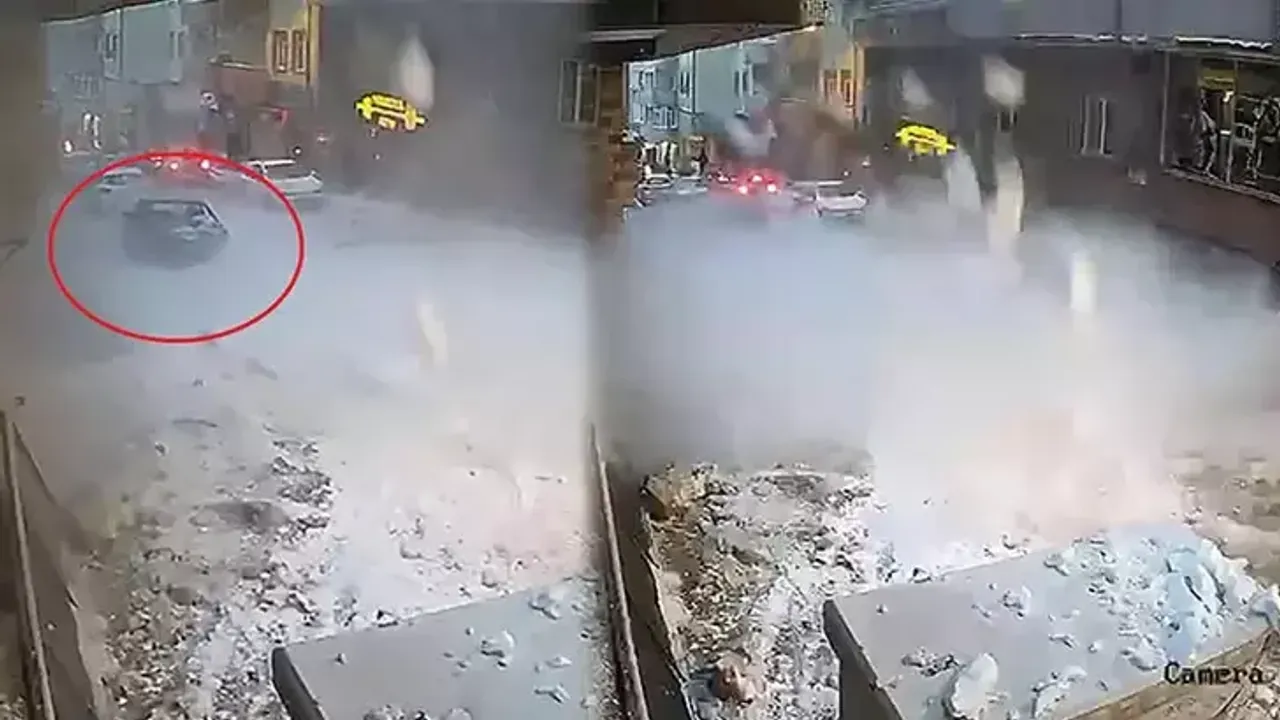 Bina önünde park halindeki 19 UL 773 plakalı otomobilin üzerine düşen kar kütleleri araçta hasara yol açtı. Otomobilin kullanılamaz hale geldiği anlar bir iş yerinin güvenlik kamerasına yansıdı.