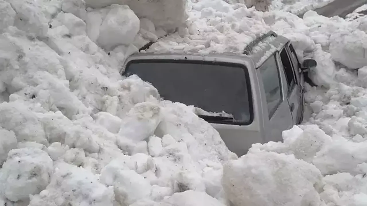 Bu sırada yoldan geçen araç, çığ altında kaldı. Araçtaki 4 kişi kendi imkanlarıyla çıktı.