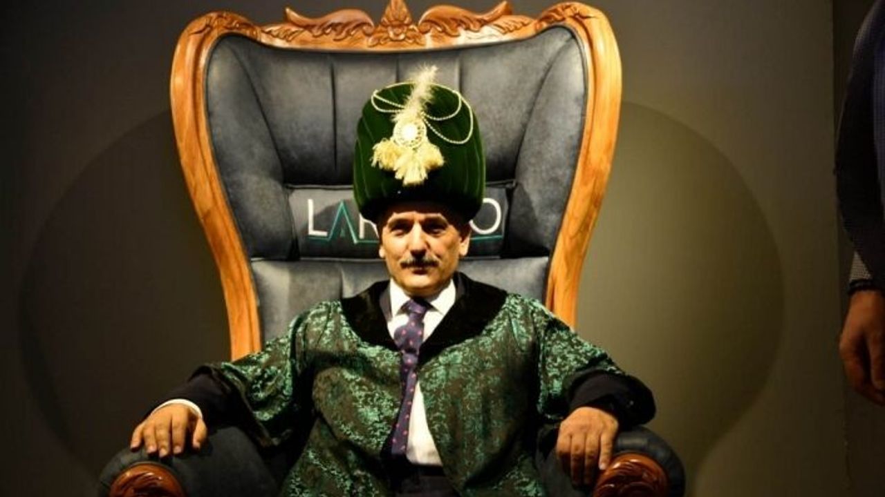 "4. Samsun Mobilya ve Dekorasyon Fuarı"nın açılışına katılan Samsun Valisi Osman Kaymak, padişah cübbesi giyip kavuk takarak kral tahtına oturdu.