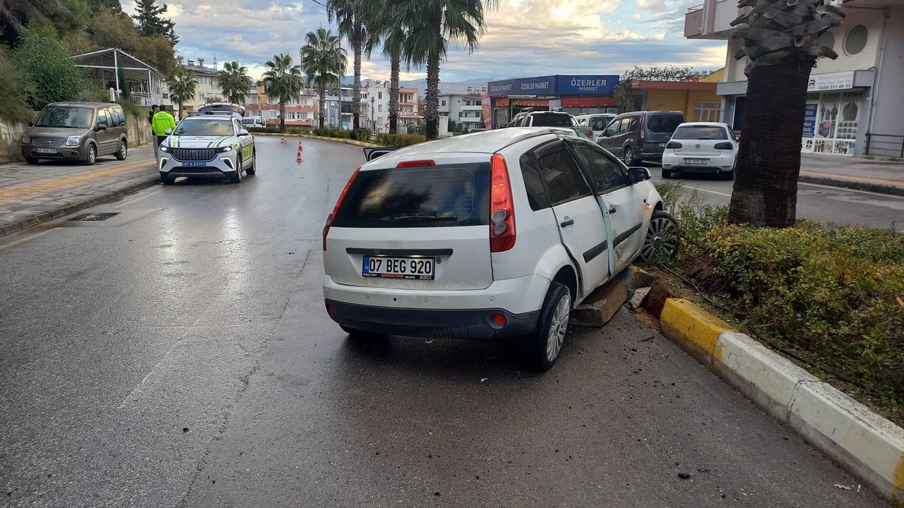 Kontrolden çıkan otomobil, orta refüjde bulunan palmiye ağacına çarparak durabildi.