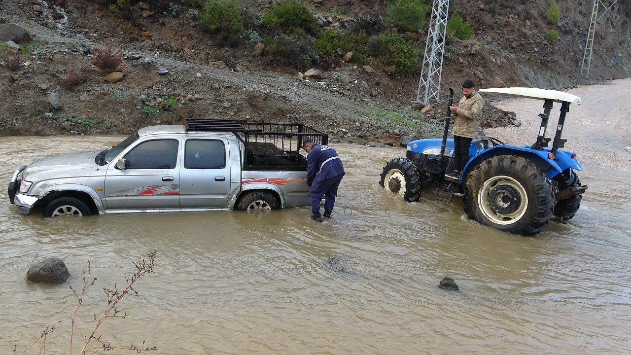Antakya ilçesinin Gülderen Mahallesi'nde yaşanan olayda, Mikail Doğru isimli vatandaş, ahırını kontrol etmek için geldiği yolda aracının suya kapıldığını ve mahsur kaldığını belirtti. Doğru, traktör yardımıyla aracını kurtardı. Yağmur sonrası kayaların devrildiğini belirten Doğru, "Geçen yıl böyle değildi, bu sene çok yağmur yağmasıyla birlikte bu durumla karşılaşıyoruz," dedi.