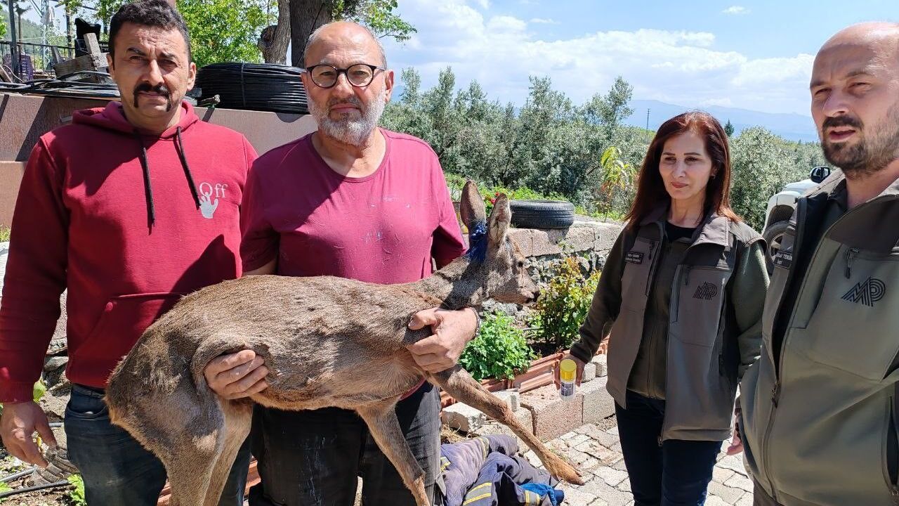 Gökdere Mahallesi'nde yaşayan Sırlı Gülle, çocuklarıyla birlikte zeytin bahçesine çıktığı sırada hareketsiz şekilde duran yavru bir karaca gördü. Yaklaştıklarında hayvanın kaçmaya çalıştığını ama arka ayaklarını sürüklediğini fark eden Gülle, hayvanın yaralı olduğunu düşünerek onu evine aldı.