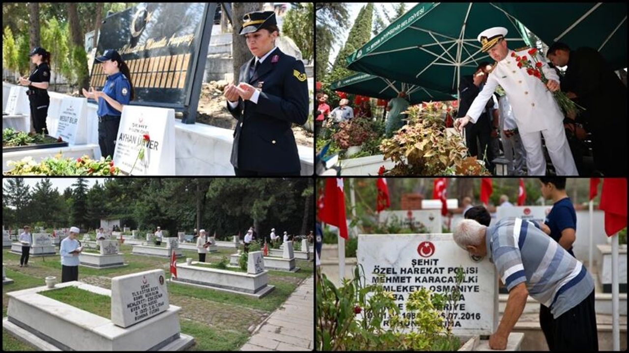 Daha sonra Vali Recep Soytürk ile beraberindekiler, 15 Temmuz şehidi Münir Alkan'ın da aralarında bulunduğu şehitlerin kabirlerine karanfil bıraktı.
